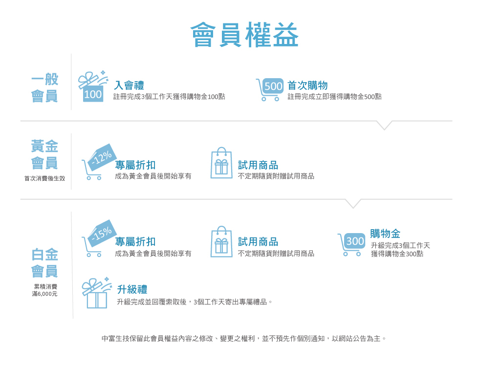 購物即可獲得中富官網購物金,累積越多折抵越多!